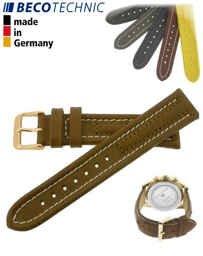 Beco Technic Leather Watch Strap, Model 682 Arizona, Genuine Calf skin, cognac, Size 18mm, buckle: gold plated stainless steel. 100% Made in Germany.