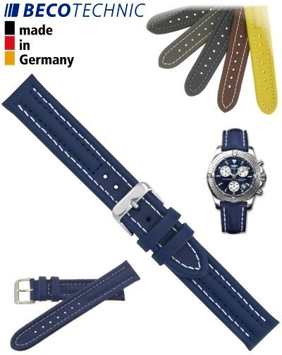 Beco Technic Leather Watch Strap, Model 682 Arizona, Genuine Calf skin, blue, Size 24mm, buckle: stainless steel. 100% Made in Germany.
