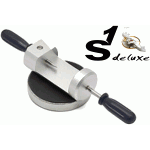 This watch case holder tool BULLONGÈ QUICK-FIX is designed for wristwatches with built-in, integrated watch bands but can be used on any watch with an open style band. The watch holder features 2 metal arms that hold watch straps and bracelets out of the way while you work on the watch case or you remove the spring bars to change the watch strap. There is a 34/36mm reversible nylon die mounted in the middle for the watch to sit on without being scratched. This watchmaker tool comes in handy when you have to do a quick battery change or repair on a watch and don't want to remove the band. The die is pressed on to a standard 4.6mm sized peg and can be replaced with any standard watch press nylon die. The tool is very well constructed with an all metal frame and felt feet on the bottom for a secure grip. The base of the tool measures 128 x 60mm and is approximately 54mm in height. The distance between the 2 metal arms is 100mm. Learn More€19.99incl. VAT plus Shipping -