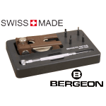 This BERGEON 8745 B-PRESS swiss made multi-press is used to remove and install watch bracelet pins and screws. It features a metal, mirrored base plate (2-1/2" diameter) which increases visibility when aligning the lower screw. Supplied with the 6744-P bracelet holder, ten assorted screwdriver blades, six pins, 6475-PG-A holder for pins and blades, plus two support pieces which fit over the center post of the base and are adjustable for height. The 8745 has a convenient, removable base used to store pins, blades and the two supports. Both the press and the base have rubber feet for stability when working independently. Bergeon designed the 8745 to do a LOT in a little space; having a footprint size of just 8,8 x 12,5 cm and only 15 cm tall. Scope of delivery: • Multi-press for removing and installing watch band pins and screws • Special mirrored base plate for extra visibility • Set of 8 blades - 2 cruciform (1.5mm, 2.0mm) straight blades 2 ea (0.80mm, 1.0mm, 1.2mm, 1.5mm) and 1 ea (1.5mm, 2.0mm) • Set of 6 pins (0.40mm, 0.60mm, 0.80mm, 1.0mm, 1.5mm, 2.0mm) • 2 adjustable support bases. Weight: 350g. Learn More€375.74incl. VAT plus Shipping -