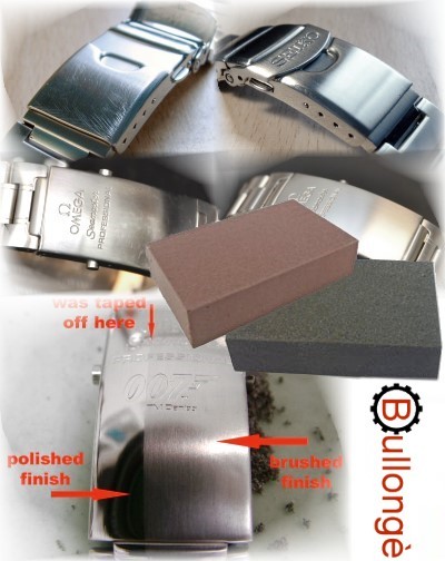 Set of two abrasive rubber blocks BULLONGÈ by Garryflex 120 medium and 240 fine. The abrasive blocks consists of durable rubber filled uniformly with tough abrasive grit. She suited for the cleaning, matify, satinize and polishing of various metals, like watch cases and metal bracelets. This products are also ideal for de-rusting or general cleaning on many parts of watches, as well as for used on flat and curved surfaces for removing scratches. The most common use this rubber blocks for watch cases and bracelets refurbishment using several grains (120 and 240) to get the desired effect, like matting or satin finish. Dimensions: 76 x 50 x 19mm (each). This abrasive rubber sponges belongs in every watchmaker's workshop.