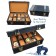 Unusual handmade watch box DENIM JEANS 10 by Roy Coopers, will comfortably accommodate up to ten watches. Exterior: denim fabric, interior: sand-colored fine velvet. The unique spring-cushions stores watches up to 50mm in diameter. External dimensions of the watch box: 365 x 210 x 130 mm (bxdxh). Unusual watch box for watch collectors and people who love extravagant interieur.
