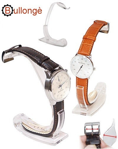 Watch stand: elegant panache, transparent, very eye-catching and stable. For both men's and ladies watches. Height 121cm.